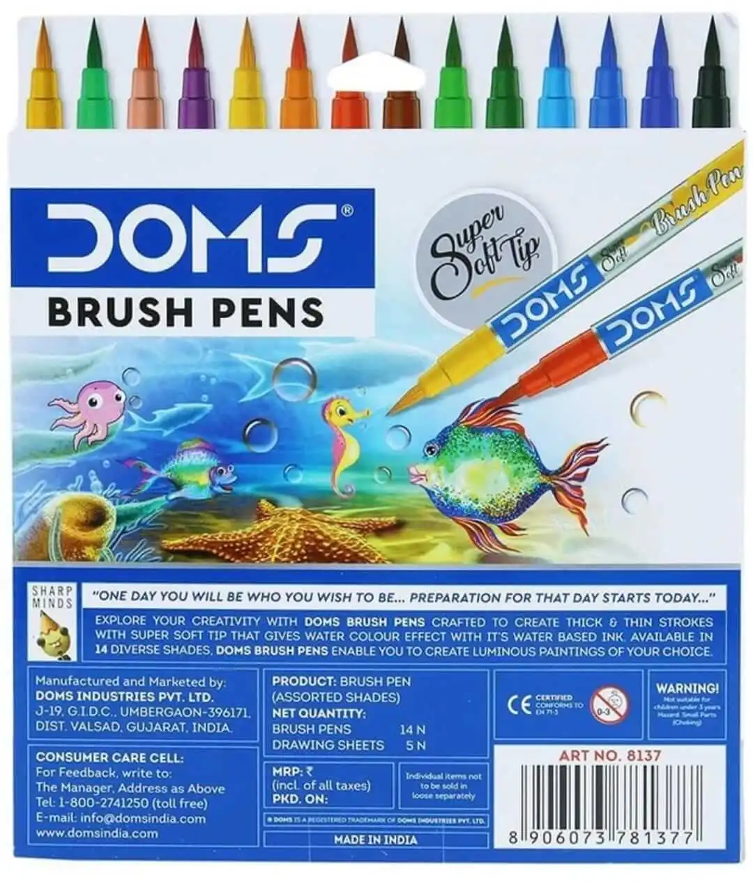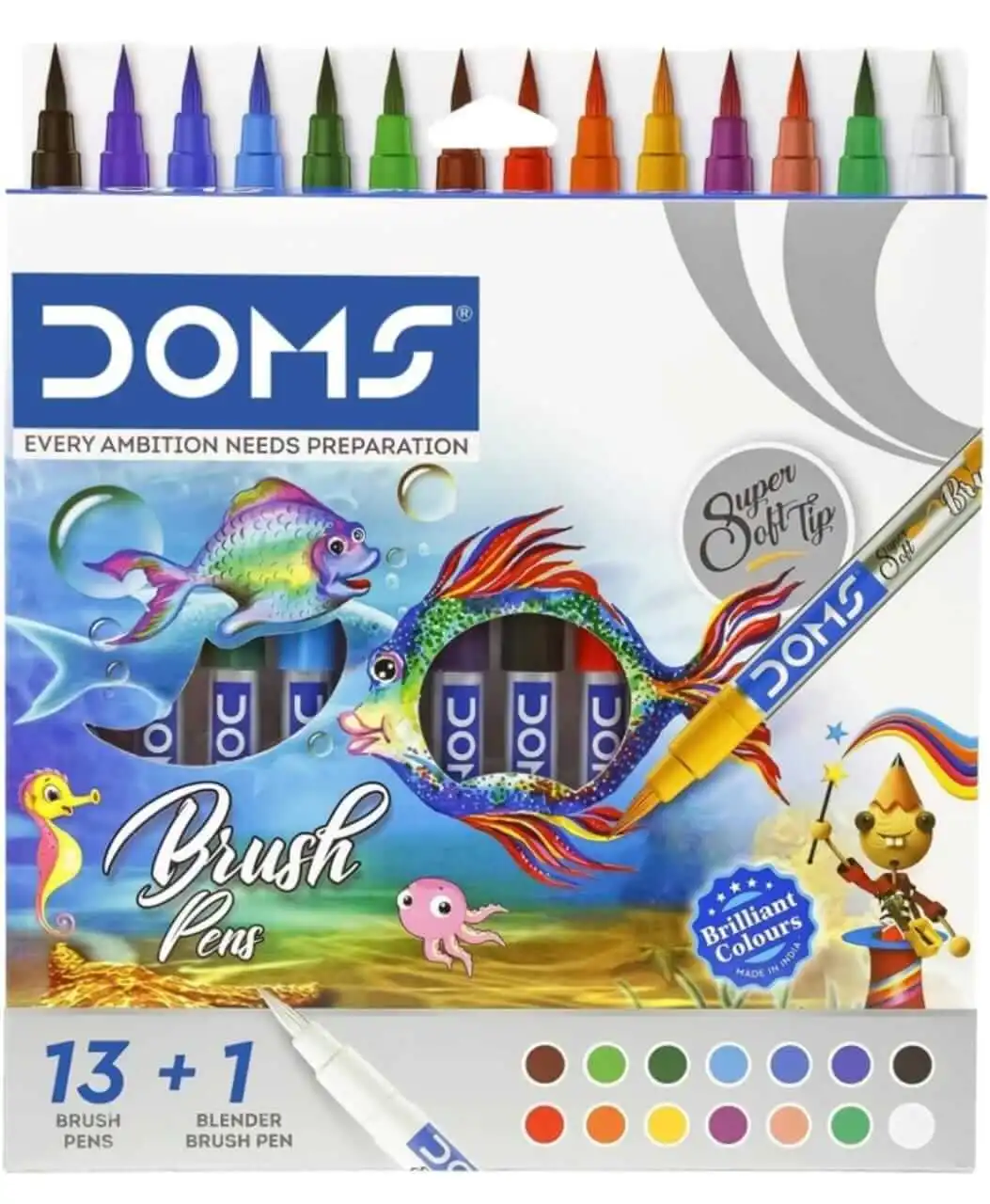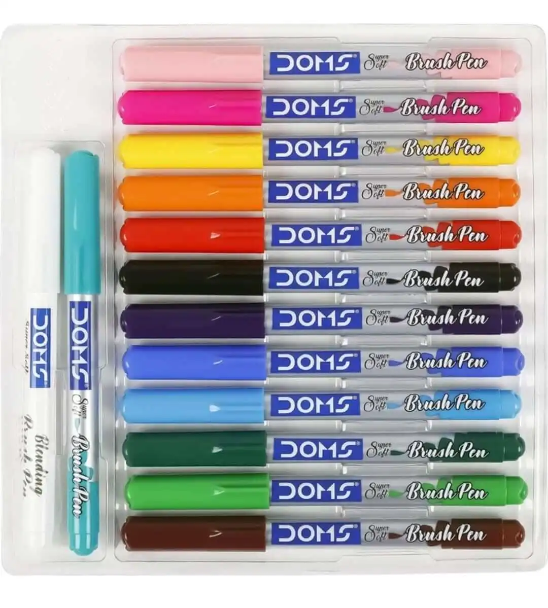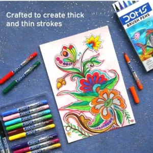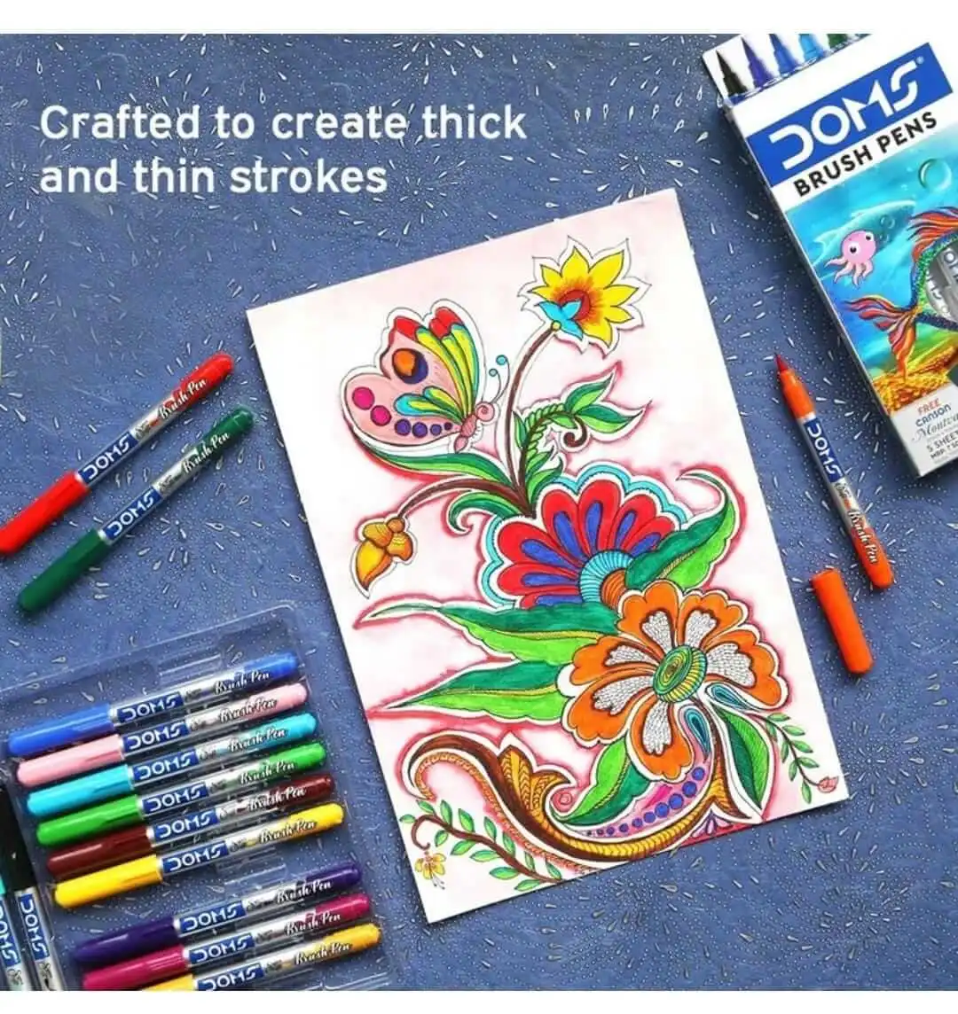 DOMS 14 Shades Brush Pen Box Pack | Super Soft Tip With Brilliant Colors | Water Based Ink Which Gives Water Color Effect | Pack Of 1, Multicolor