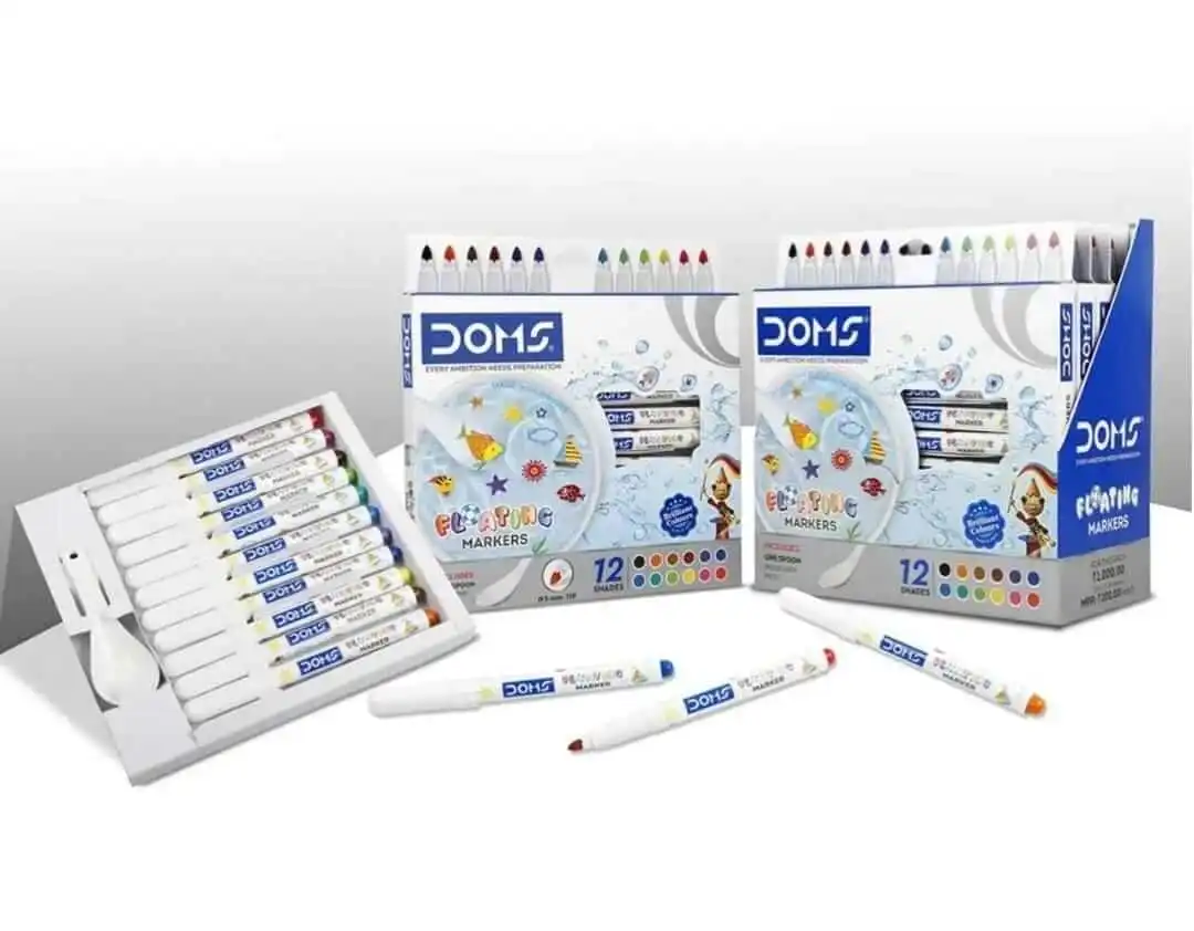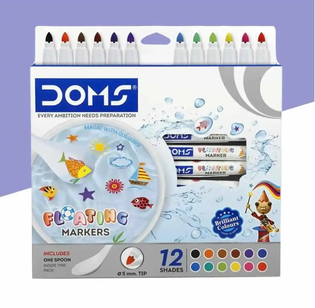 Doms Floating Markers 12 Shades| 5 Mm Medium Tip & Includes 1 Ceramic Spoon For Unlimited Fun| Draw On Ceramic Spoon, Slowly Dip It In Water & Watch The Characters Floating, Multicolor (Pack of 1)