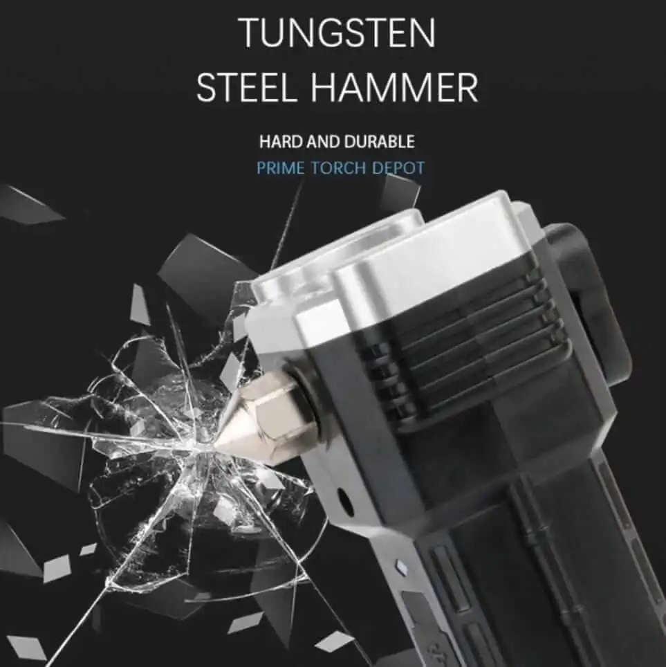 Torch Light, LED 3W Torch Light Rechargeable Torch Flashlight, Long Distance Beam Range Car Rescue Torch with Hammer Window Glass and Seat Belt Cutter Built