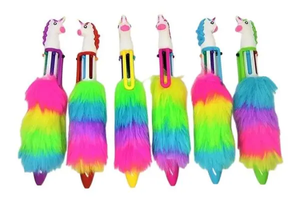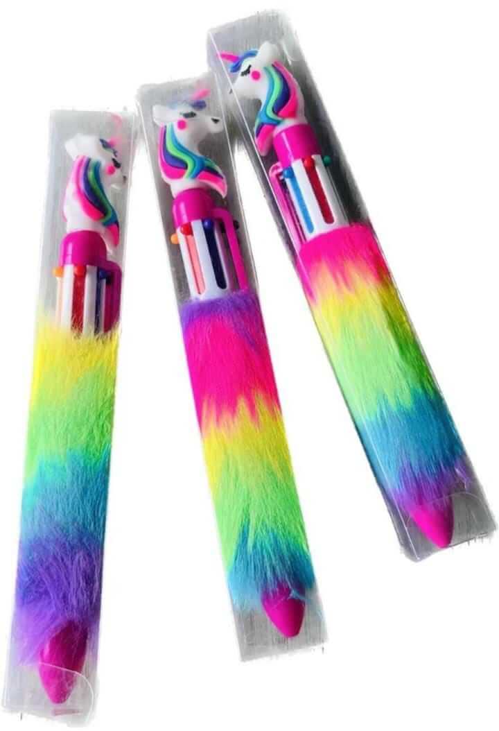 Unicorn 6-in-1 Ink Color Rainbow Fur Ballpoint Pen for Unicorn Lovers/Birthday Party Favor Return Gift/School, Office Supply for Kids and Adults